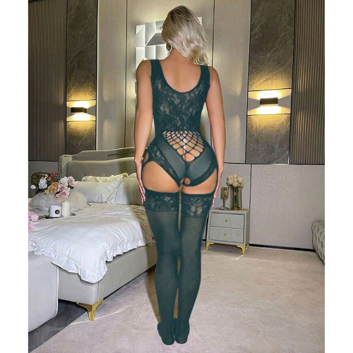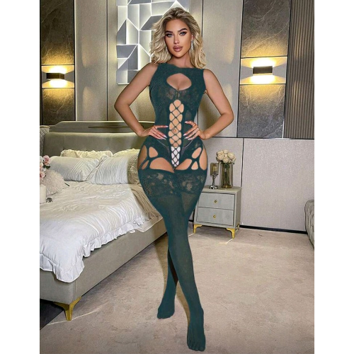 Immerse yourself in the opulent shade of our Dark Green Bodystocking, a masterclass in High-Contrast Silhouette Mapping. This striking piece is engineered with Precision Cut-Out Geometry, designed to frame the female form with a sophisticated blend of open-work and intricate mesh. Featuring a rich, emerald-inspired hue, this bodystocking acts as a Lustrous Emerald Body-Veil, offering a seamless, second-skin fit that balances bold exposure with delicate textures.