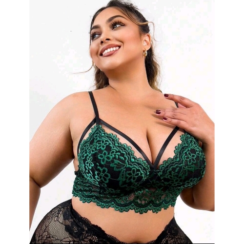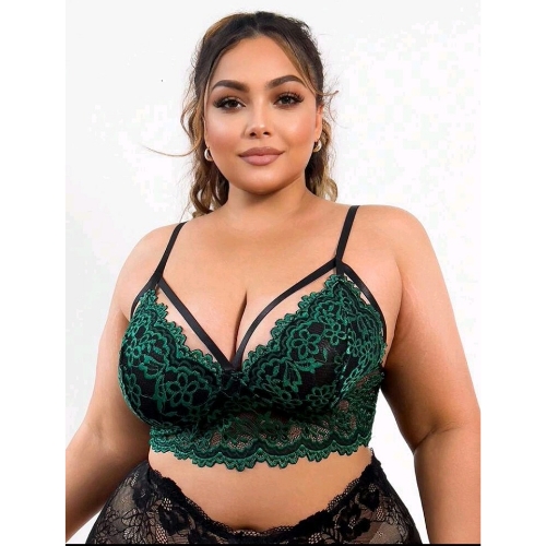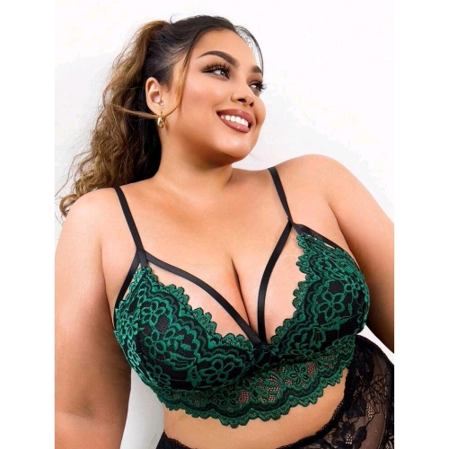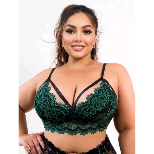 Plus Size Embroidered Lace with Straps Bra (Dark Green)