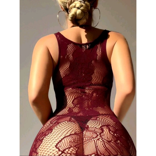Envelop your curves in the deep, intoxicating hue of our Floral Fishnet Hollow Out Body Stocking Dress. This beautiful burgundy body stocking dress is a masterclass in texture and transparency, combining the raw edge of a fishnet body stocking with the soft elegance of woven botanical patterns. The rich wine-colored fabric provides a sophisticated alternative to classic black, ensuring you stand out in any boudoir setting.