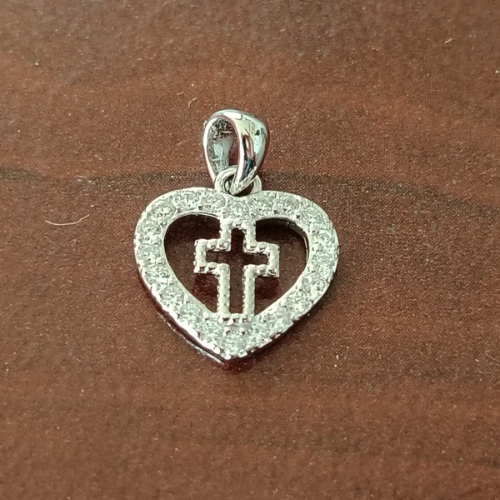 Sterling silver heart pendant with CZ and cross detail