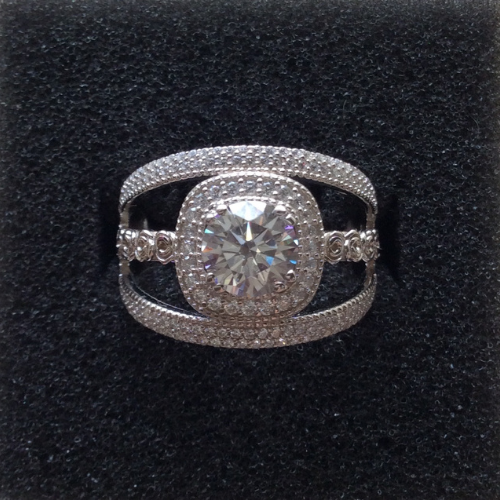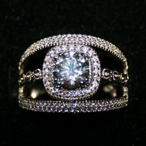 Round clear center CZ Sterling Silver Ring with 3 open CZ