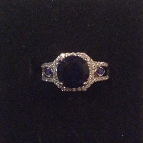 Round Dark Blue center CZ with CZ border and double CZ Bands