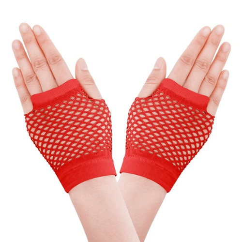 Add a touch of edgy glamour to your outfit with the Short Fishnet Fingerless Gloves Red
