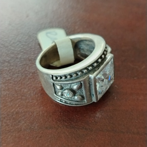 Square Center CZ Sterling Silver Ring with Side Detail (Size O)