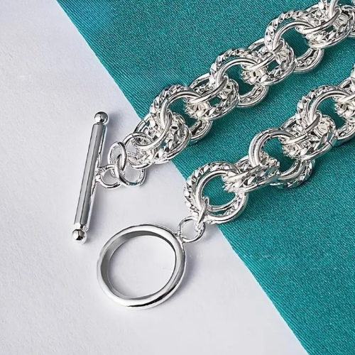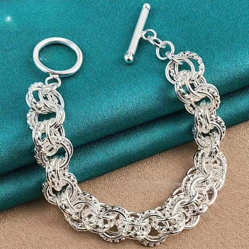Beautiful detailed double ring sterling silver bracelet (20cm)