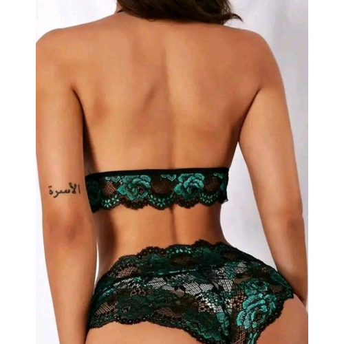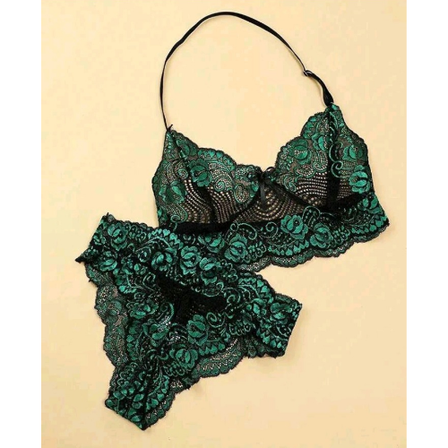 The Stunning Lace Halter Neck Bralette and Panty set combines elegance and allure in a perfect blend of green and black lace. Featuring a halter neck bralette with soft triangular lace cups and a beautifully detailed lace band under the bust, this set offers both comfort and sophistication. The matching lace panty completes the look, making it an ideal choice for romantic evenings, special occasions, or simply feeling confident and beautiful.